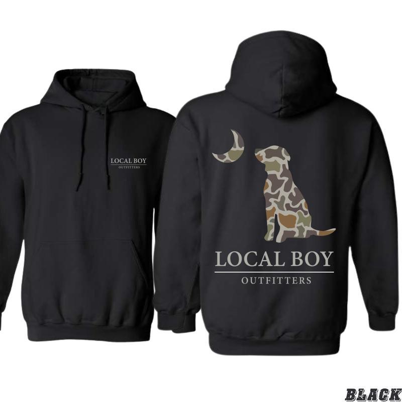 Local Boy Outfitters Hoodie - Classic Camouflage Dog Design Featuring Moon Graphics, Perfect For Outdoor Enthusiasts And Dog Lovers, Full Colors