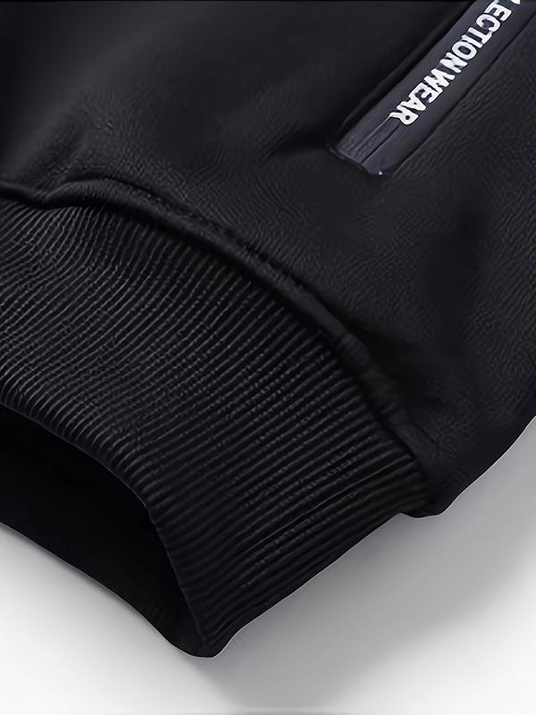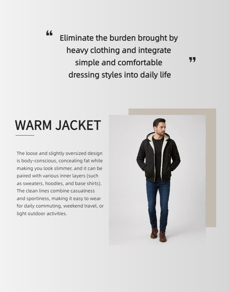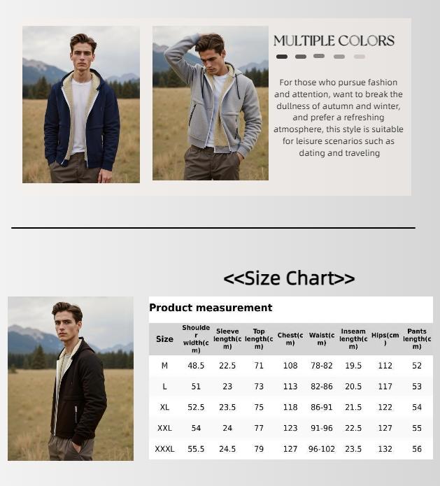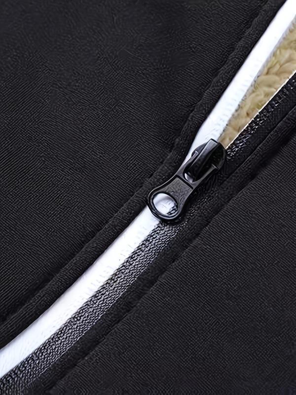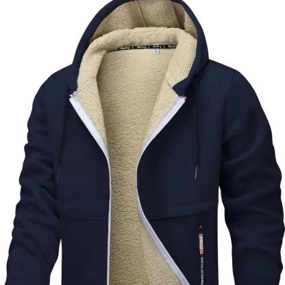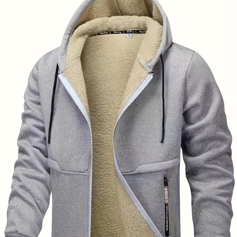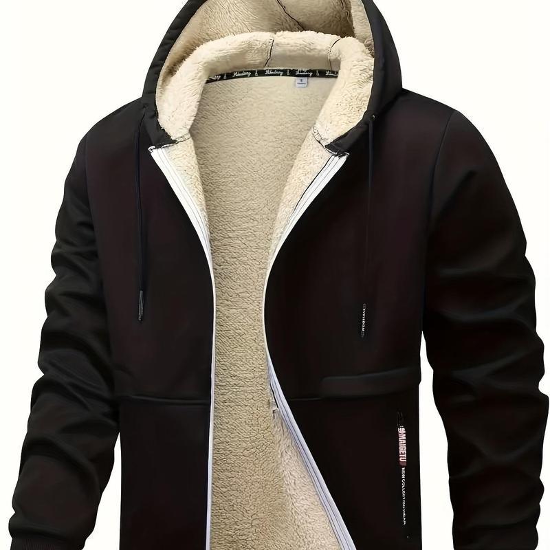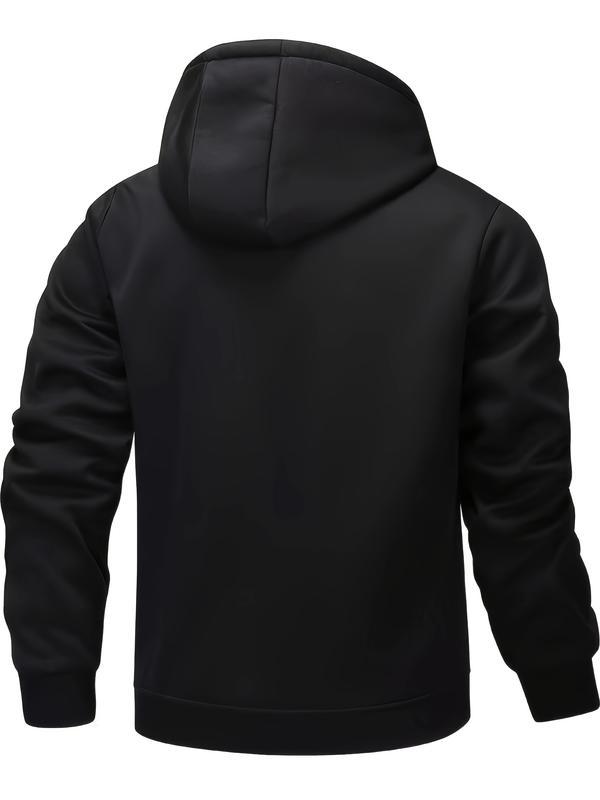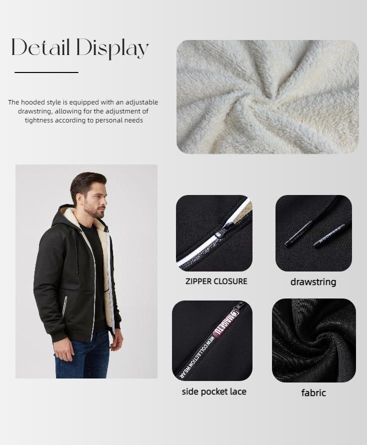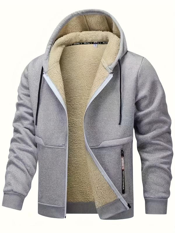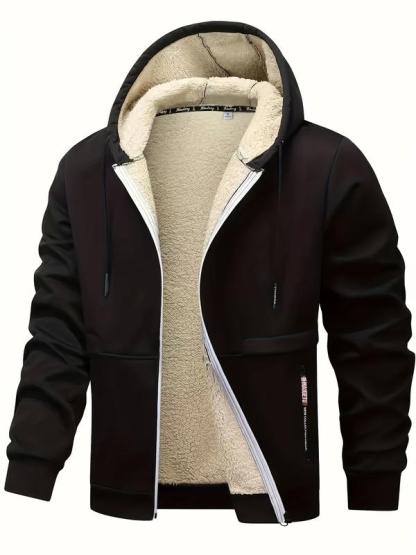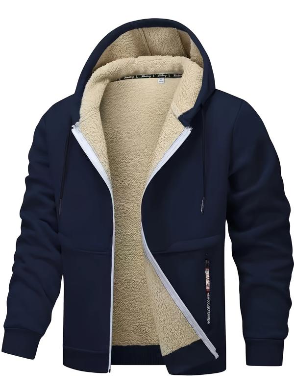 Men's fashionable lined hooded jacket - Warm and comfortable solid color zipper autumn/winter casual polyester fiber jacket with drawstring hooded, cold weather clothing/fashionable hooded jacket/plush lined hooded shirt