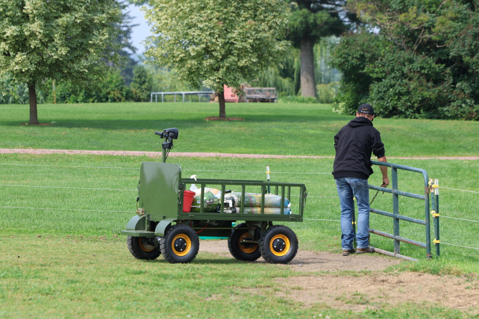 Turn heavy hauling into a quick, easy, and even fun job with the rugged Electric Ride-On Utility Cart. From moving feed on the farm to hauling firewood for the weekend, is your go-to machine for serious work and off-the-clock fun.