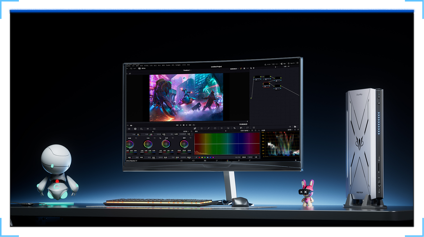 - Noise (Gaming Mode): 26dBA (idle), 32.8dBA (100% load), (50cm), (Minisforum test environment)